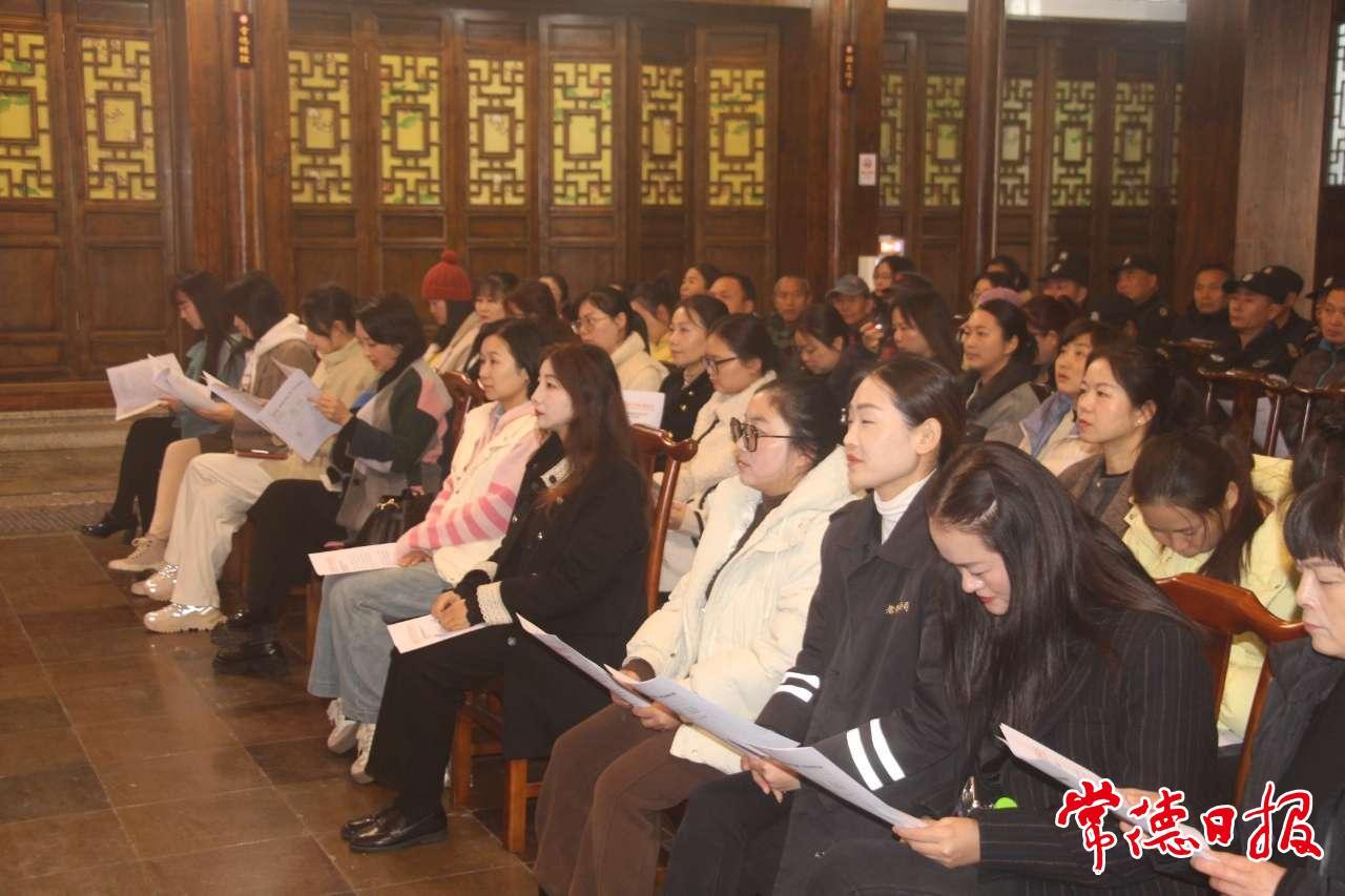 常德河街街區(qū)管理人員代表、常德河街街區(qū)商戶代表、柳葉湖旅游度假區(qū)管委會(huì)及街道社區(qū)相關(guān)干部、文化志愿者、旅游公司及酒店員工等近百人參加了此次培訓(xùn)。今年12月,常德市將采取自愿報(bào)名和綜合測評(píng)相結(jié)合的方式,確立一批服務(wù)優(yōu)、管理好、有特色的常德河街街區(qū)商戶為示范店,授予“桃花源式待客之道示范店”牌匾,予以表彰獎(jiǎng)勵(lì)。