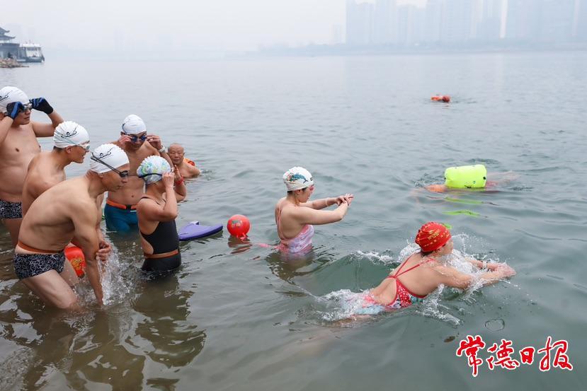 當天上午9時,市城區氣溫5℃許。“泳者”們脫去外衣適應溫度,經過一番熱身后,大家共同喊出口號,紛紛躍入水中,揮臂暢游。只見大家的游速由慢轉快,動作靈活,身姿矯健,不時地變換著各種泳姿,激起朵朵浪花,色彩繽紛的浮漂和泳帽將沅江點綴成“一江秀水”,成為冬日沅江畔一道靚麗風景線,引來眾多市民圍觀。