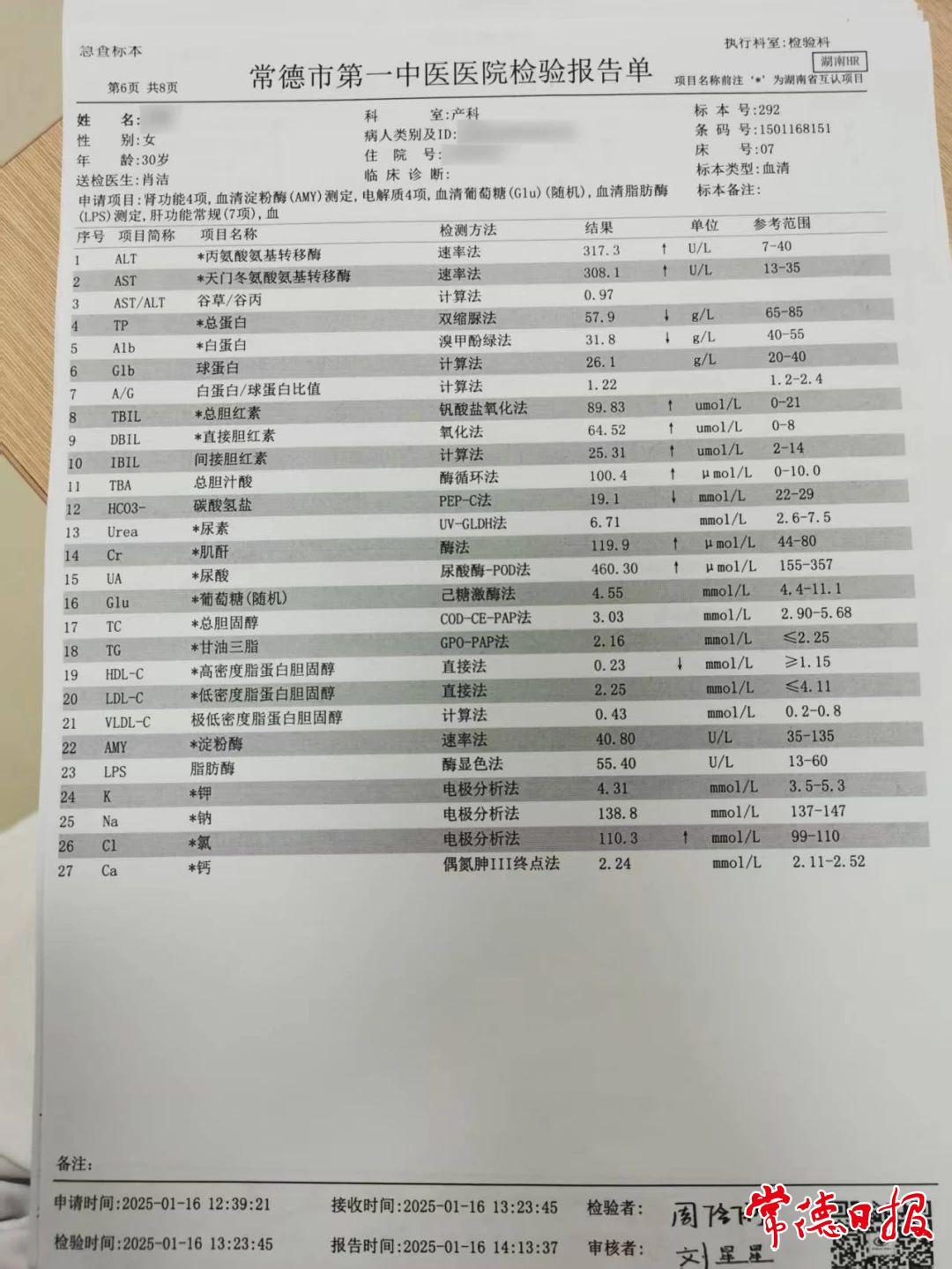 常德日報記者 王浪 通訊員 吳秀英 文/圖 一次常規產檢,沒想到查出了妊娠晚期罕見的致命性疾病——妊娠期急性脂肪肝。所幸,經過常德市第一中醫醫院婦產團隊的精準救治,母嬰平安。近日,懷孕37周的瑩瑩(化名)回想起自己的經歷仍覺得十分后怕。