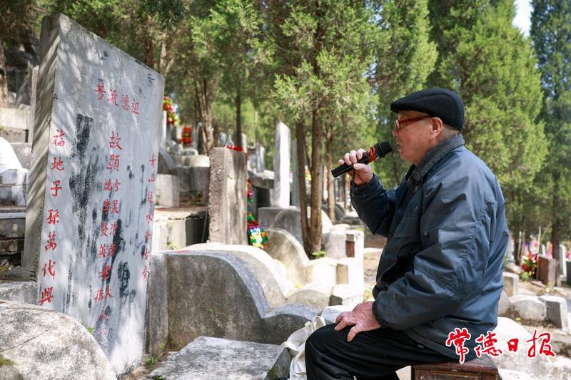 常德日?qǐng)?bào)記者 蔡文龍 文/圖 4月2日,在常德市武陵區(qū)華南墓地,一場(chǎng)別開生面的祭奠儀式正在進(jìn)行,81歲的吳安華在父母墓前深情歌唱,這已是他連續(xù)6年在清明節(jié)期間以唱歌的方式緬懷已故雙親——父親吳清榮、母親李發(fā)英。