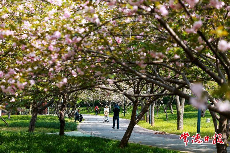 4月3日,在常德市屈原公園櫻花坡景點,大片粉嫩的櫻花盛開,吸引不少市民踏青賞花、拍照打卡,盡享春日好時光。