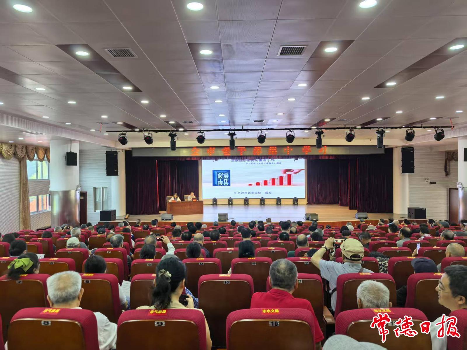本次學(xué)習(xí)培訓(xùn)由市委老干部局舉辦。集中學(xué)習(xí)培訓(xùn)會(huì)上,湖南省委黨校經(jīng)濟(jì)學(xué)部原主任、教授戴軍以“當(dāng)前經(jīng)濟(jì)形勢(shì)與重點(diǎn)工作——學(xué)習(xí)貫徹《政府工作報(bào)告》精神”為題,系統(tǒng)解讀了經(jīng)濟(jì)發(fā)展預(yù)期目標(biāo)、宏觀政策取向及重點(diǎn)任務(wù),通過(guò)鮮活案例和翔實(shí)數(shù)據(jù),將政策理論與常德發(fā)展實(shí)際相結(jié)合,為老干部呈現(xiàn)了一堂生動(dòng)深刻的形勢(shì)政策課。
