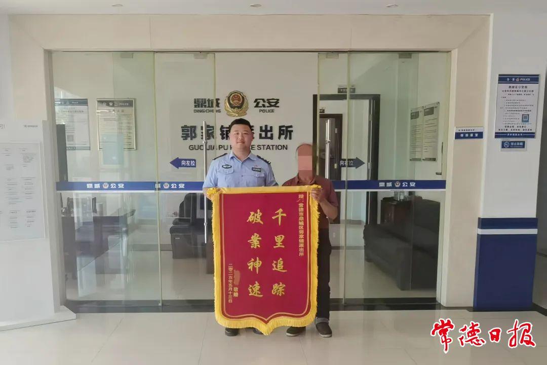 常德日報記者 鄧淇月 通訊員 譚縝 余文潔 文/圖 近日,市民郭先生將一面印有“千里追蹤 破案神速”的錦旗送到鼎城區公安局郭家鋪派出所,感謝民警為其挽回損失。這背后,是一起涉案金額高達600余萬元的重大詐騙案件。