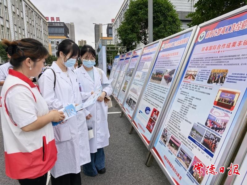常德日報記者 鄧淇月 通訊員 譚縝 文/圖 6月26日,常德市禁毒委在湖南名家醫藥集團有限公司舉辦“防范藥物濫用,共建無毒沅澧”主題宣傳活動,通過實地調研與互動宣傳相結合的方式,深化醫藥行業禁毒意識。市委常委、市委政法委書記、市委秘書長、市禁毒委第一副主任傅勇,副市長、市公安局局長、市禁毒委常務副主任張永強參加活動。
