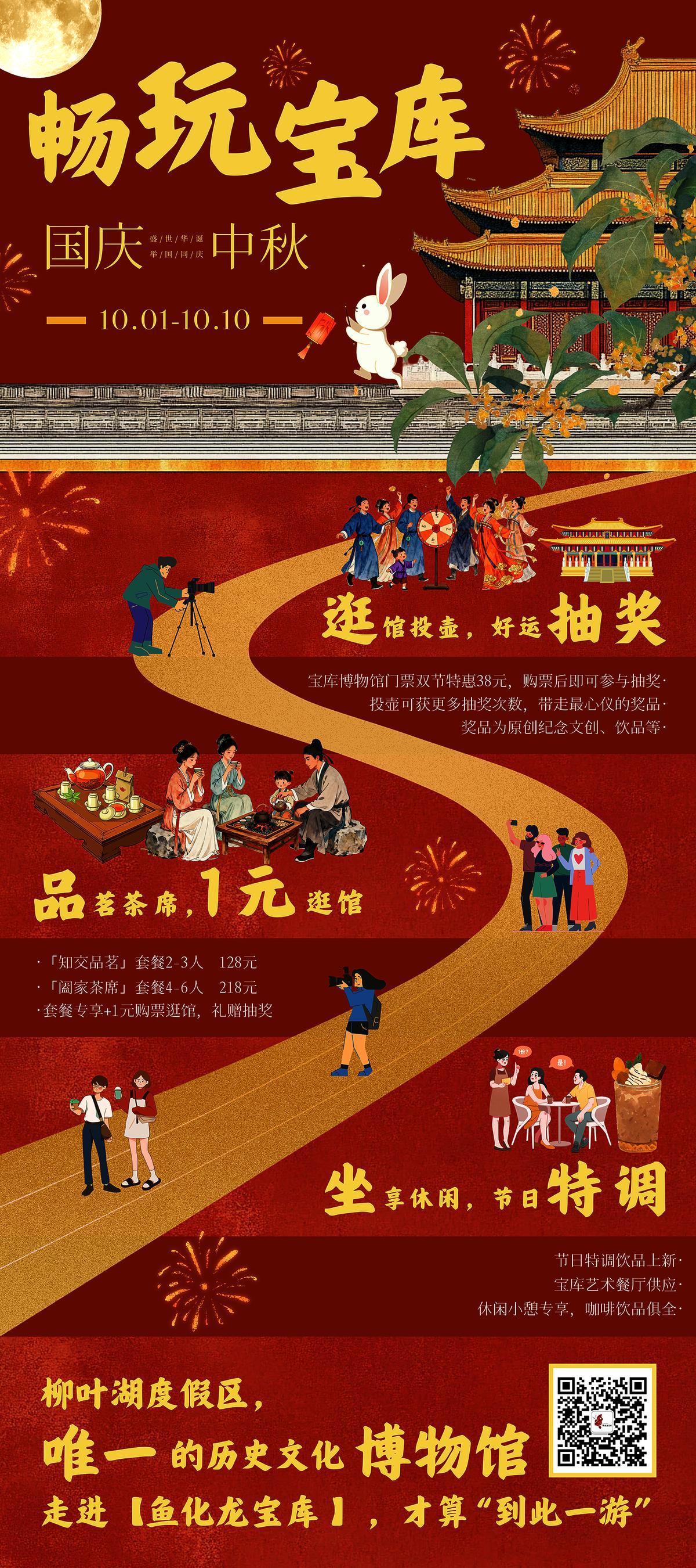 活動內容:“國慶潮玩季”,有傳統技藝體驗(非遺手作、月餅DIY等)、現場游戲體驗(投壺等)、中秋千燈會等活動。