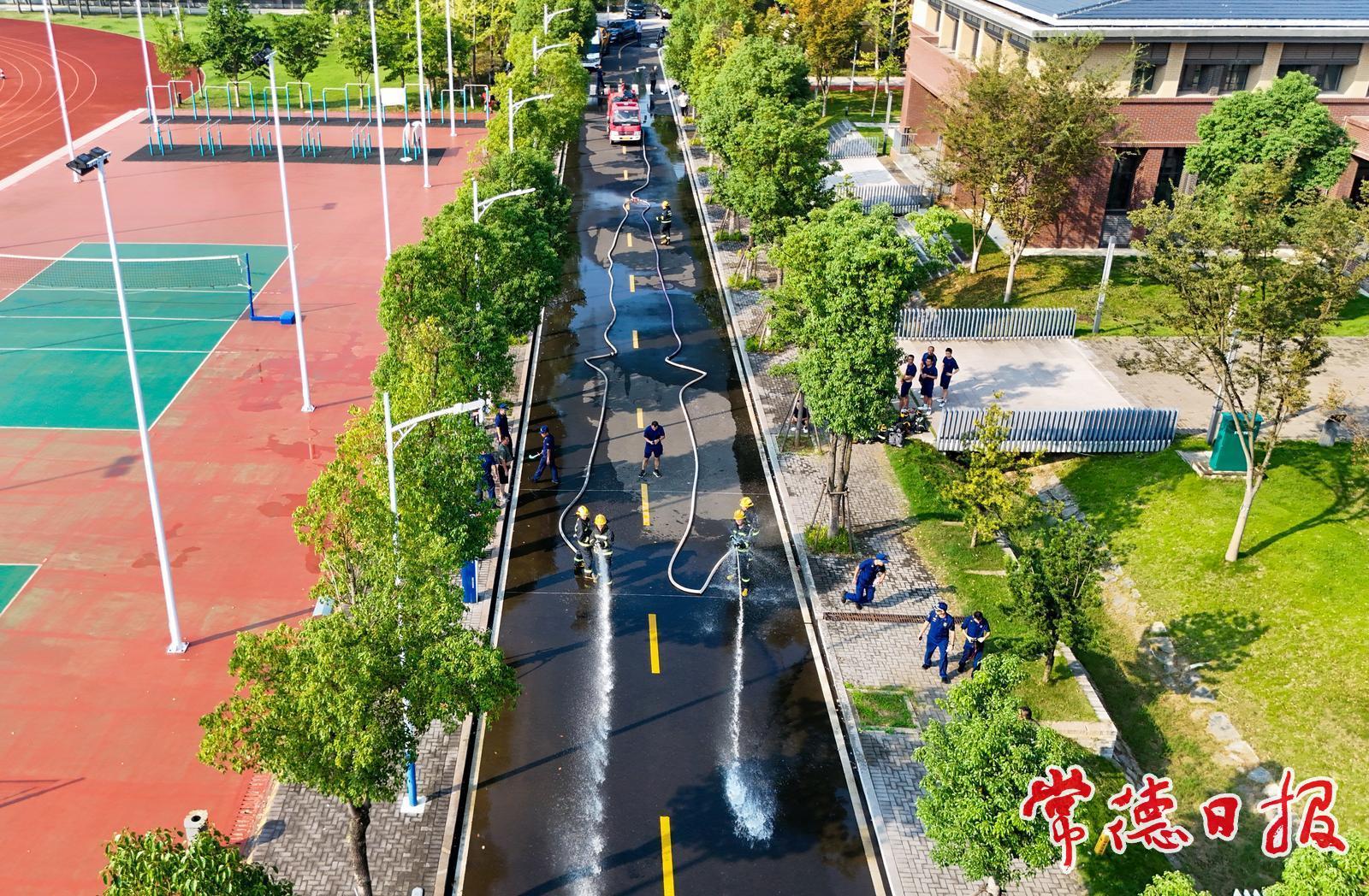 作為壓軸項目,消防車一車兩槍操更是精彩紛呈。指令一下,隊員們迅速鋪帶、接槍、出水,動作一氣呵成。“靶心命中!”裁判的報靶聲接連不斷。石門縣代表隊隊員趙柯棋與隊友協(xié)同作戰(zhàn),精準(zhǔn)完成射水動作,贏得現(xiàn)場陣陣掌聲。“這是我第一次參加比賽,我們團(tuán)隊隊員在一起集訓(xùn)了半個月,在賽場上配合特別默契,發(fā)揮得也比較好!”完成比賽后,他抹去臉上水珠,笑容格外明亮。