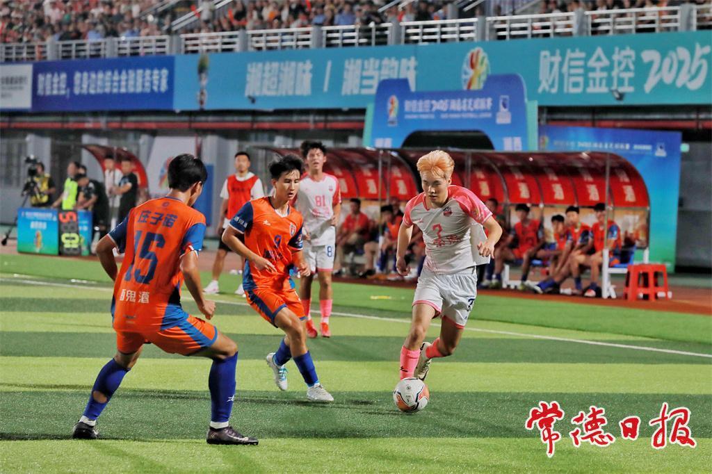 第64分鐘,常德隊27號袁露中前場發(fā)起進(jìn)攻,一腳直塞,湘西隊不慎自擺烏龍,湘西隊2球落后。