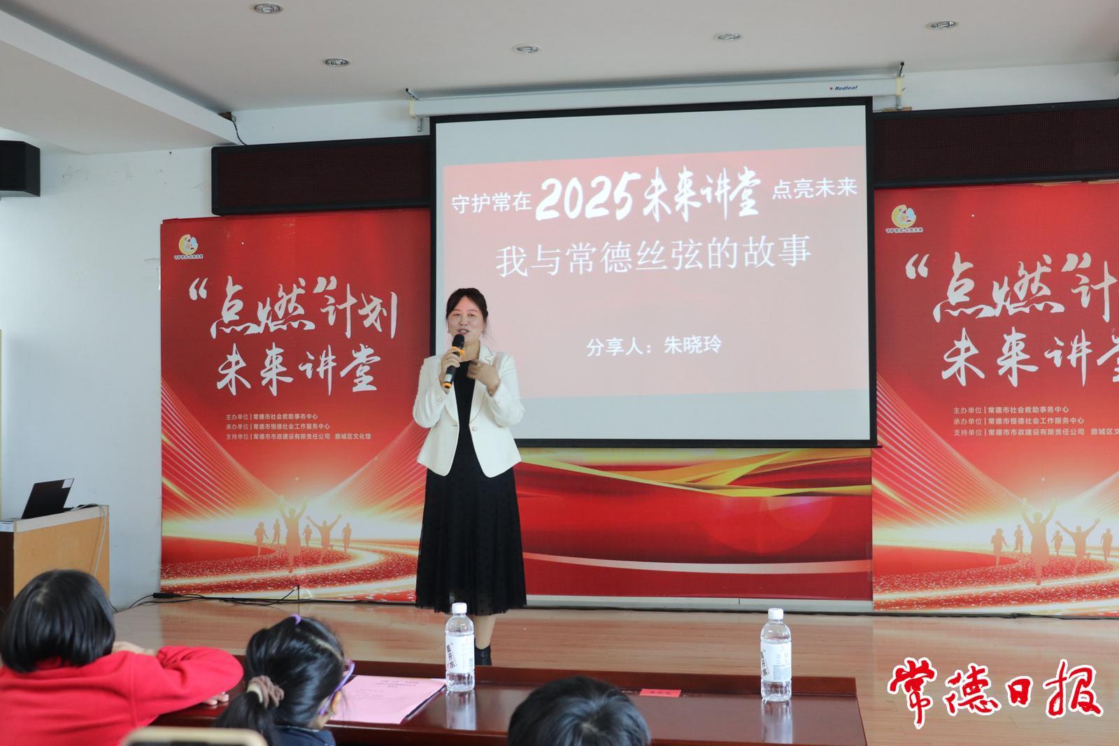 活動特別邀請到鼎城區文化館館長、首批國家級非物質文化遺產項目常德絲弦代表性傳承人朱曉玲主講。“我出生在常德一個平凡普通的家庭,我深知改變命運唯一的路徑,就是要通過自己的努力奮斗和堅持不懈……”朱曉玲以自身逆境成長經歷為切入點,用生動鮮活的故事和感人事跡化解孩子們面臨的思想困惑,引導他們正視成長難題,在潛移默化中提升思想道德素質,幫助孩子們堅定理想信念。