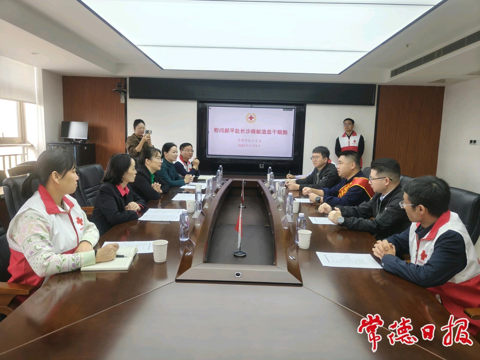 常德日報記者 李白 通訊員 余超仁 董倩 文/圖 11月5日,在市紅十字會舉辦了一場簡單的歡送活動,副市長袁世平專程為即將赴長沙捐獻造血干細胞的郝平贈送鮮花并送行。這位快遞小哥將成為常德市今年第7例造血干細胞捐獻者。